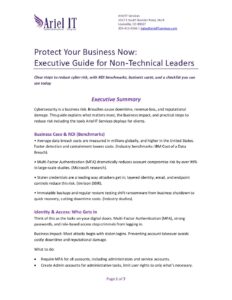 Ariel IT helps businesses simplify technology, strengthen cybersecurity, and stay compliant with evolving standards. As Business Professionals - Technical Experts, we partner with organizations to deliver reliable IT solutions that support growth and peace of mind. Contact us to learn more
